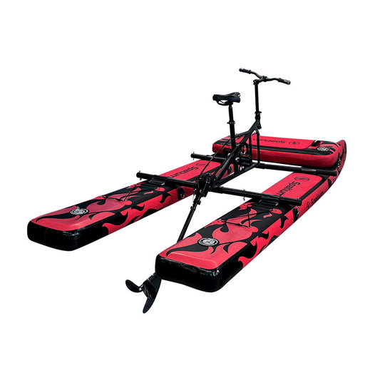 Aufgrund des ausgeklügeltem Design schwebt das Fahrrad förmlich auf dem Wasser und hat somit einen sehr geringen Widerstand. Dies ermögicht optimale Performance auf dem Wasser. Auch gegen Stömungen lässt sich es sich gut radeln.